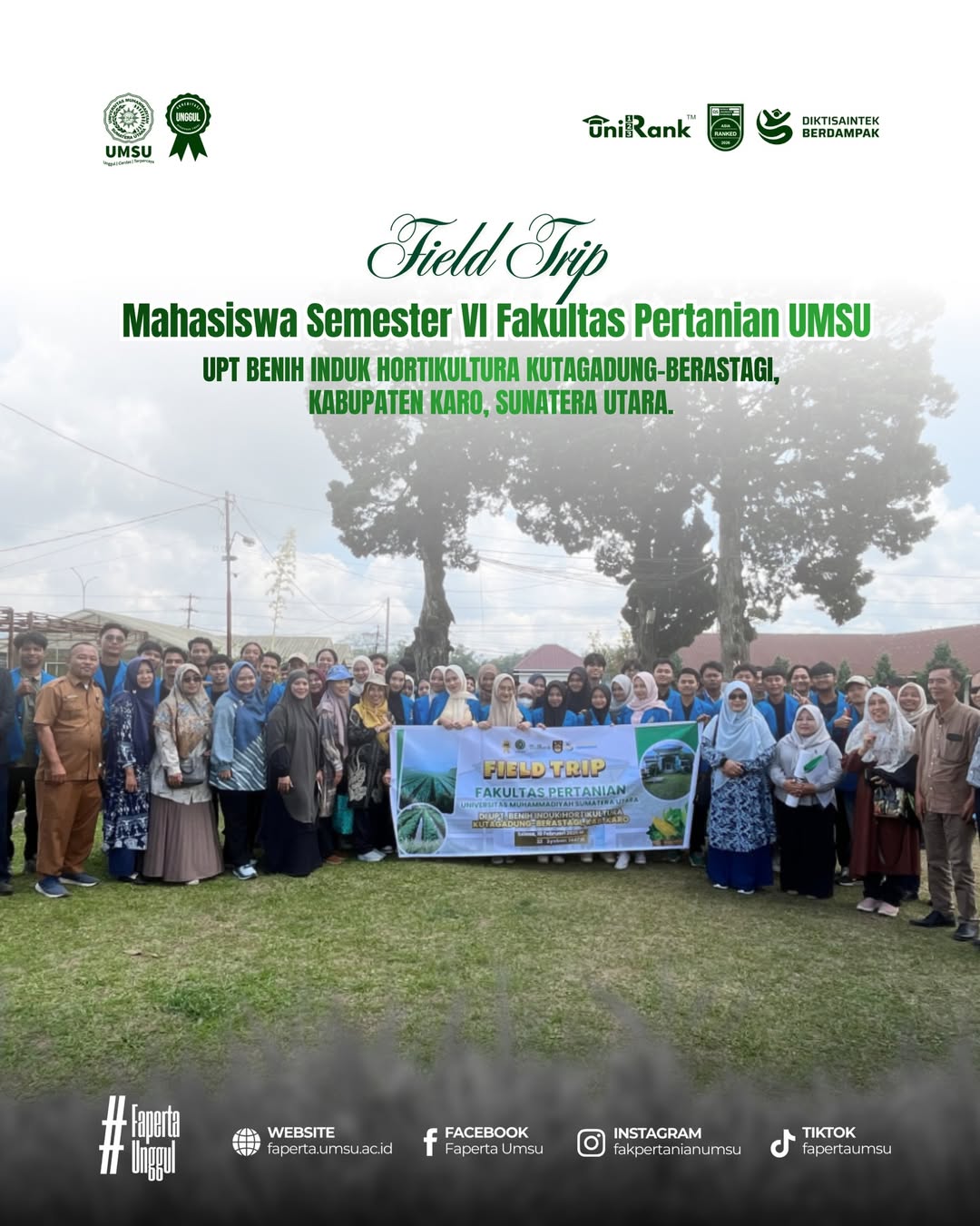 Mahasiswa Jurusan Agroteknologi dan Teknologi Hasil Pertanian Fakultas Pertanian Universitas Muhammadiyah Sumatera Utara melaksanakan kegiatan field trip ke UPT Benih Induk Hortikultura Kutagadung yang berlokasi di Berastagi, Kabupaten Karo. Kunjungan ini menjadi bagian dari pembelajaran lapangan untuk memperkaya pengalaman mahasiswa dalam memahami sistem produksi hortikultura secara langsung.