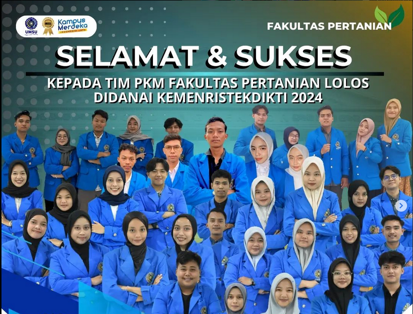 Sebanyak 8 tim mahasiswa dari Fakultas Pertanian UMSU berhasil lolos pendanaan PKM KEMENRISTEKDIKTI 2024. Keberhasilan ini mencerminkan komitmen mahasiswa dalam menghasilkan karya inovatif yang mendukung kemajuan di bidang pertanian dan teknologi. Program Kreativitas Mahasiswa (PKM) sendiri adalah salah satu ajang yang diselenggarakan untuk mengembangkan kreativitas dan inovasi mahasiswa di berbagai bidang, termasuk penelitian, pengabdian kepada masyarakat, dan lainnya.