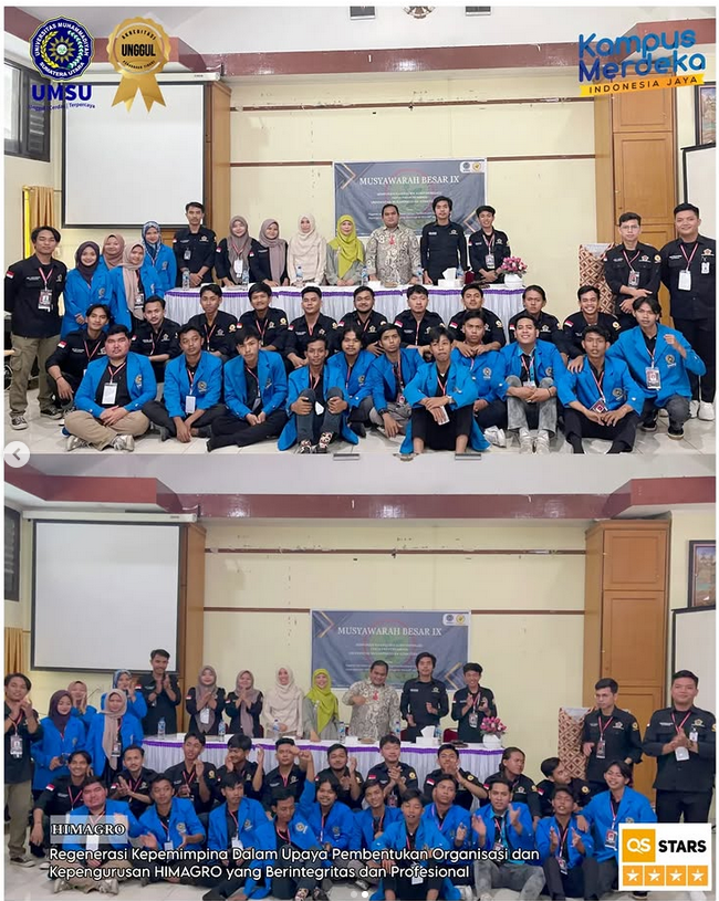 Himpunan Mahasiswa Agroteknologi Fakultas Pertanian Universitas Muhammadiyah Sumatera Utara (HIMAGRO FAPERTA UMSU) melaksanakan musyawarah besar (MuBes) ke-IX dengan tema ‘Regenerasi Kepemimpinan Dalam Upaya Pembentukan Organisasi dan Kepengurusan Himpunan mahasiswa agroteknologi yang Berintegritas dan Profesional’